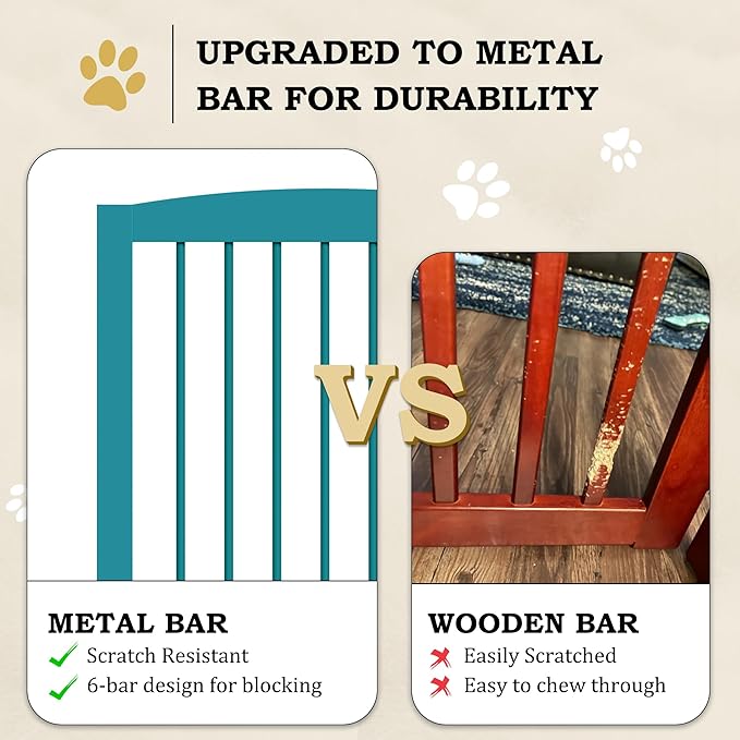 - 【Versatile Design】: This doggy gates for inside are not just for dogs; it can also be used to keep other pets, such as cats, rabbits, or even small animals like guinea pigs, safely confined to one area of the house. This makes it a versatile and practical solution for pet owners who have multiple pets.
