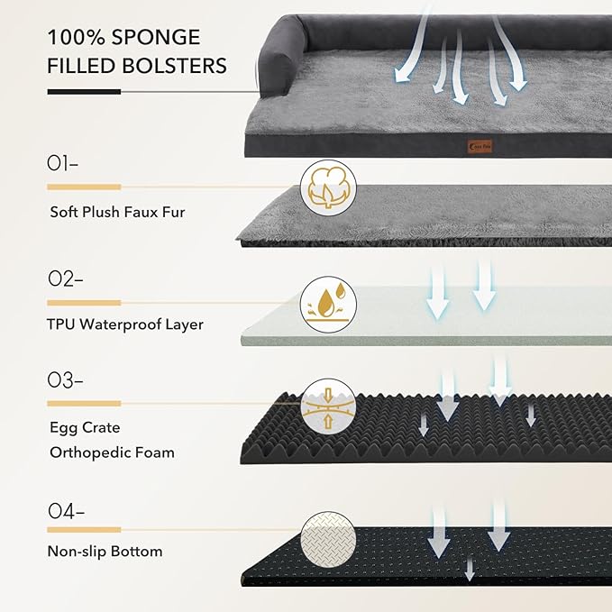 - Enhanced Orthopedic Support: Designed with orthopedic egg-crate foam and supportive bolsters, helping distribute weight evenly and provides the perfect amount of pressure relief and joint support. It is suitable for pets with arthritis, hip dysplasia, joint and muscle stiffness or simply to pamper your puppy that deserves deep sleep.