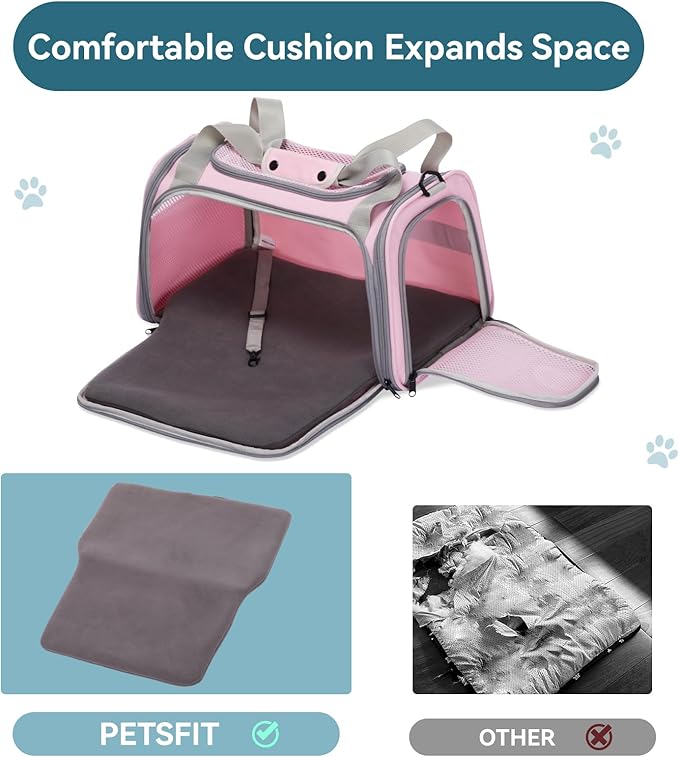 PETSFIT Cat Carrier for Large Cats, Dog Carriers for Small Dogs Under 25 Lbs, Soft Pet Carrier, Cat Crates for Indoor Cats with Cozy Extendable Mat (Large, Pink)