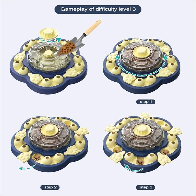 - [Perfect Puzzle Toy for Mental Engagement] This interactive puzzle toy integrates three difficulty levels and a total of four exciting play modes, which challenge your dog and keep them engaged. With each difficulty level, your dog will be rewarded with treats as they solve problems, promoting their brain development and enhancing their cognitive abilities. Whether they are a beginner or an advanced learner, this toy is perfect for relieving anxiety, boosting emotional stability, and strengthening your dog’s bond with the family, while helping them stay mentally sharp.