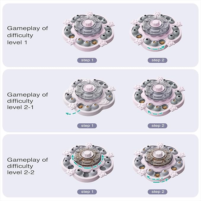 - [Perfect Puzzle Toy for Mental Engagement] This interactive puzzle toy integrates three difficulty levels and a total of four exciting play modes, which challenge your dog and keep them engaged. With each difficulty level, your dog will be rewarded with treats as they solve problems, promoting their brain development and enhancing their cognitive abilities. Whether they are a beginner or an advanced learner, this toy is perfect for relieving anxiety, boosting emotional stability, and strengthening your dog’s bond with the family, while helping them stay mentally sharp.