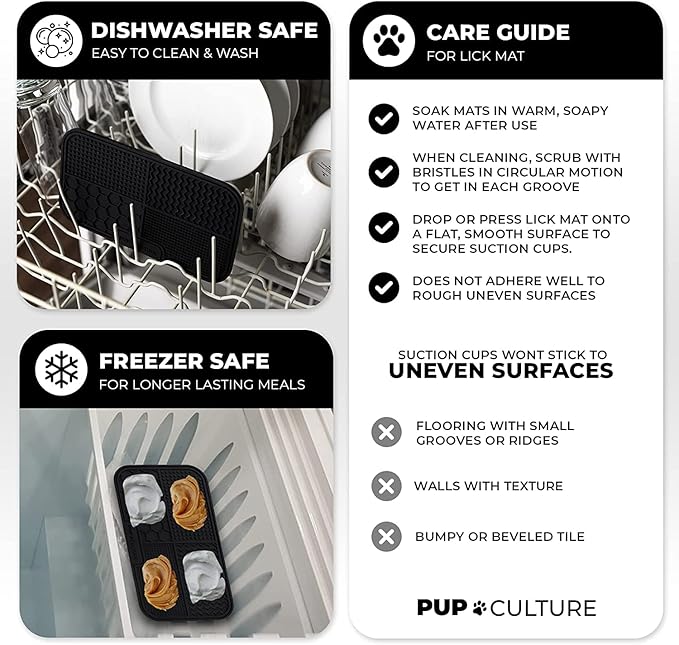 - SLOWS DOWN EATING HABITS. Does your pup eat every meal like it’s his last? Now you can stop your dog from biting off more than he can chew with Pup Culture’s Dog Licking Mat. Its unique, suctioning design outperforms the typical dog bowl with heavy-duty material that entertains your pup for hours on end, all while providing the nourishment he needs.