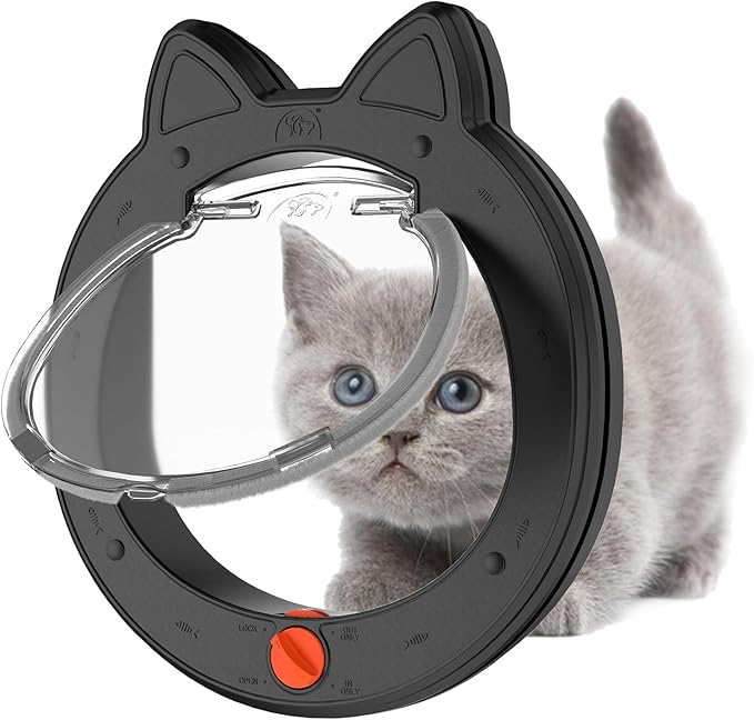 - 【 4-Way Switching Modes】: The cat door interior door has four models to lock with switches - swing out only, in only, both in and out, and fully locked, easy control of your pet's in and out.