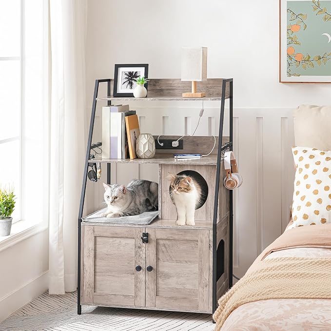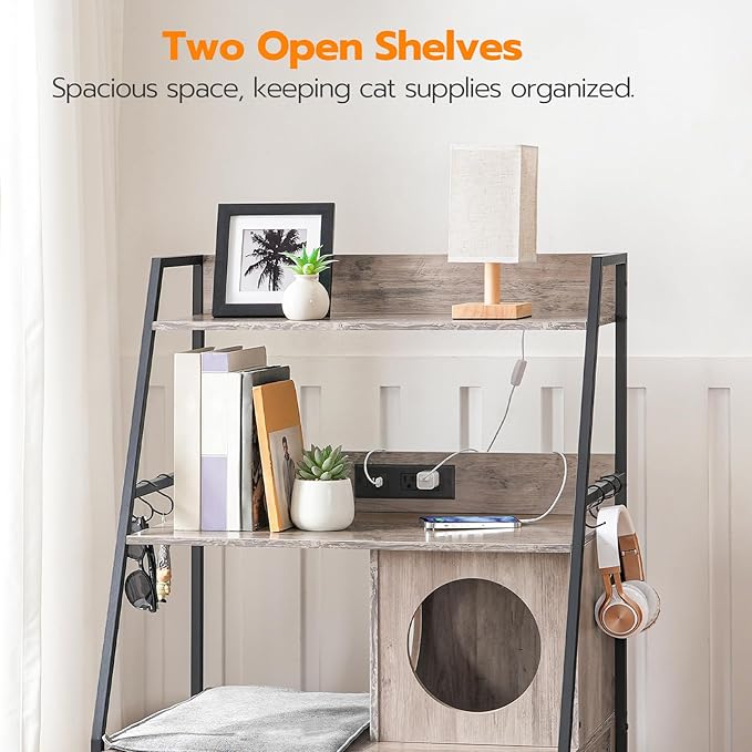 - 2-Tier Open Storage Space: The litter box cabinet upper open shelves can be used to store the cat food, cat litter or toys and place your books, photo frames or potted plants, everything being in right order without losing the elegance