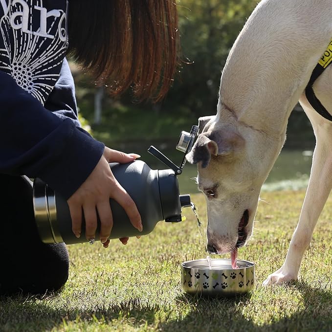 - 【DOG MUST HAVES】The GiNT dog water bottle has a capacity of 37 ounces, comes with a detachable water bowl and easy-to-carry carrying bag. All stainless steel hot and cold pet water bottle allows both your pet and you to enjoy a refreshing cold drink. This will be one of the best dog walking accessories.