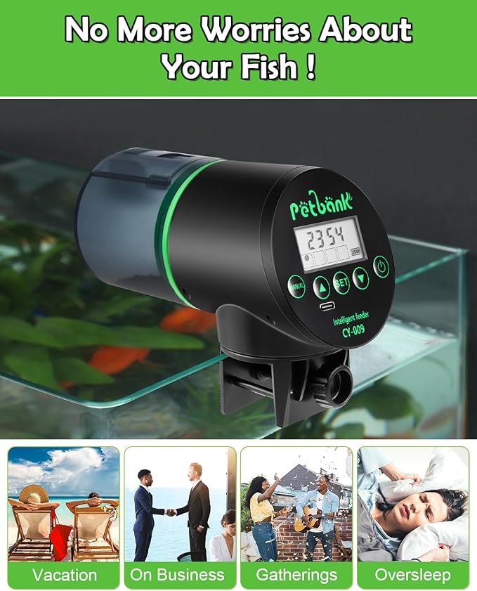 - Large Capacity & Adjustable Mount: The 200ml large-capacity container accommodates various fish feed types, including pellets, granules, and powders. Easily control the feeding amount by adjusting the slider, ensuring the right portion for your aquatic pets