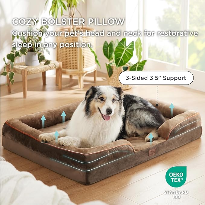 Bedsure XL Plus Orthopedic Dog Bed for Extra Large Dogs - Washable XLarge Dog Cat Bed Waterproof, Comfort Dogs Couch Sofa with Washable Removable Cover, Pet Bed with Nonskid Bottom, Brown, 48"