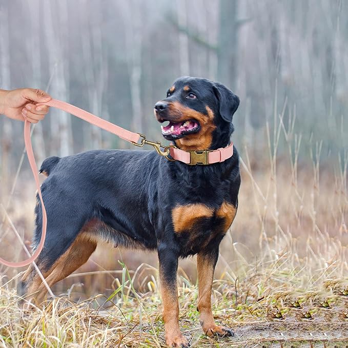 Didog Soft PU Leather Dog Collar, Stylish Quick Released Dog Collar for Large Dogs, Easy Clean Adjustable Pet Collar for Daily Walking, Pink, L Fit 15-23" Neck