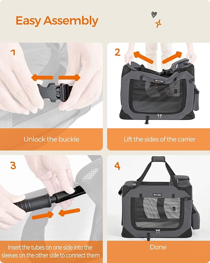 - 【ANTI-ESCAPE & STRONGER】Featuring self-locking zippers that ensure pets can't open it from the inside, the travel dog crate enhances safety while traveling. The thick steel frame and Oxford fabric are scratch- and tear-resistant for prolonged service life