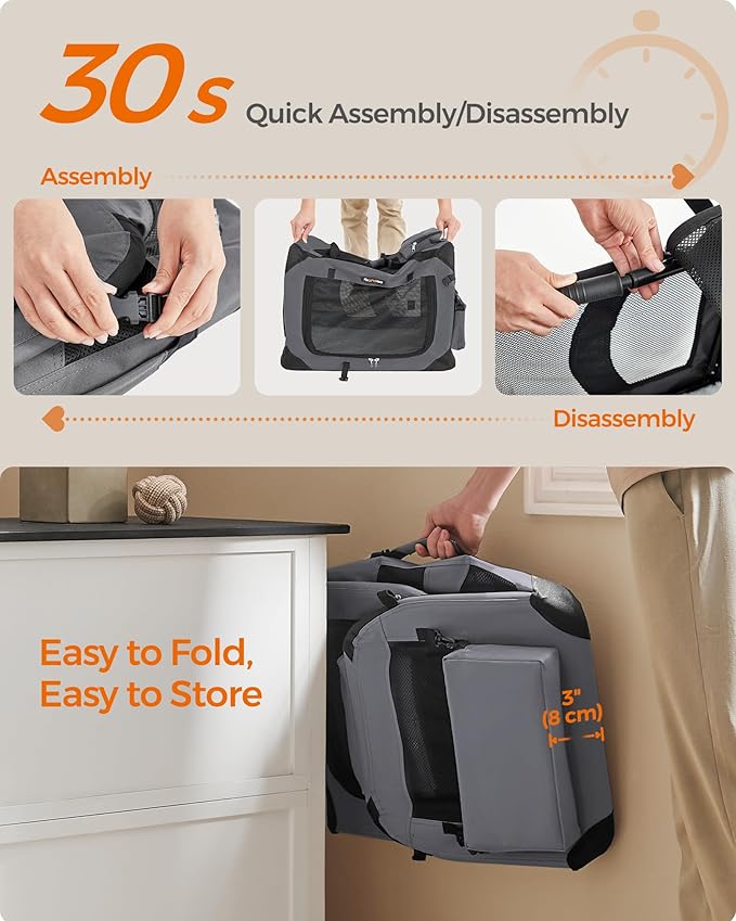 Feandrea 24 Inches Collapsible Soft Dog Crate, Portable Travel Dog Crate for Indoor and Outdoor Use, Dog Carrier Kennel with Safety Zippers, for Living Room, Car, Travelling, Camping, Gray UPDC60GY