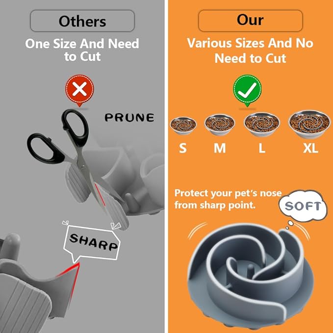 - 【SOFT AND SAFE FOR YOUR PET'S NOSE】Made from high-quality silicone material, our dog bowl slow feeder is designed to be soft and gentle on your pet's sensitive nose. Unlike other materials, silicone won't scratch or irritate your pet's skin, making mealtime a comfortable experience for your furry friend.