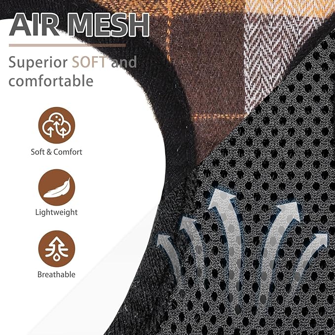 - [REFLECTIVE, PLAID PATTERN] - This Harness has two sides of reflective straps, and the middle logo also is reflective, so if you walk with your dog at night, then both of you will be safer! In addition, the classic plaid pattern is designed by our internal brand team, so it's very different from other normal harnesses. This plaid pattern looks both classic and stylish and is never out of date.