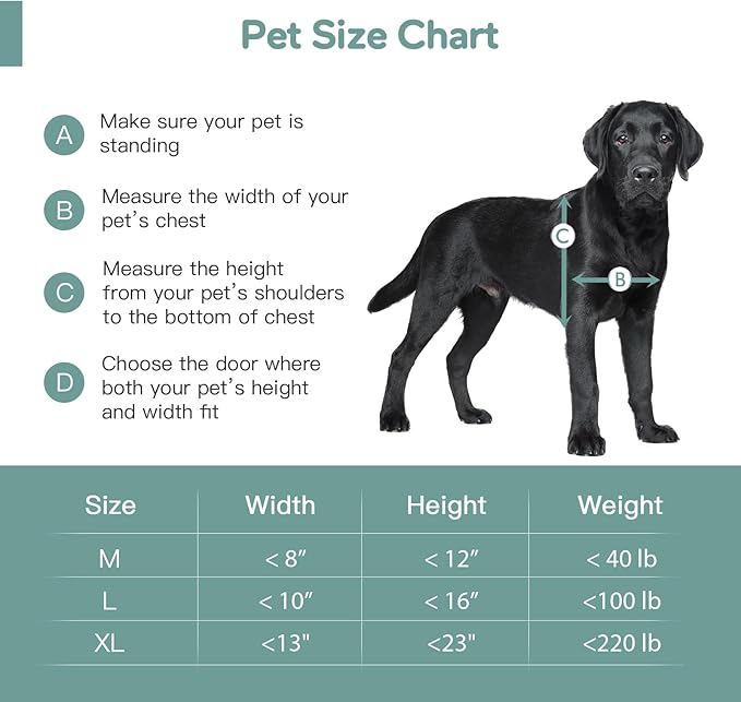 - TAILORED FOR YOUR PET : Flap Opening: 13 19/64"W x 23 19/32"H and is designed for pets up to 220 pounds.