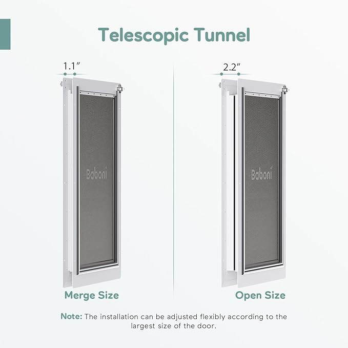 Baboni 3-Flaps Pet Door for Interior and Exterior Doors, Steel Frame and Telescoping Tunnel, Strong and Durable Dog Door(Pets Up to 220 Lb) -X-Large