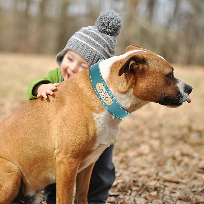 Didog Genuine Leather Dog Collars with Engraved Nameplate, Personalized Soft Leather Dog Collar with Custom ID Tag, Brown/Green/Red for Medium Large Dogs (L,Blue)