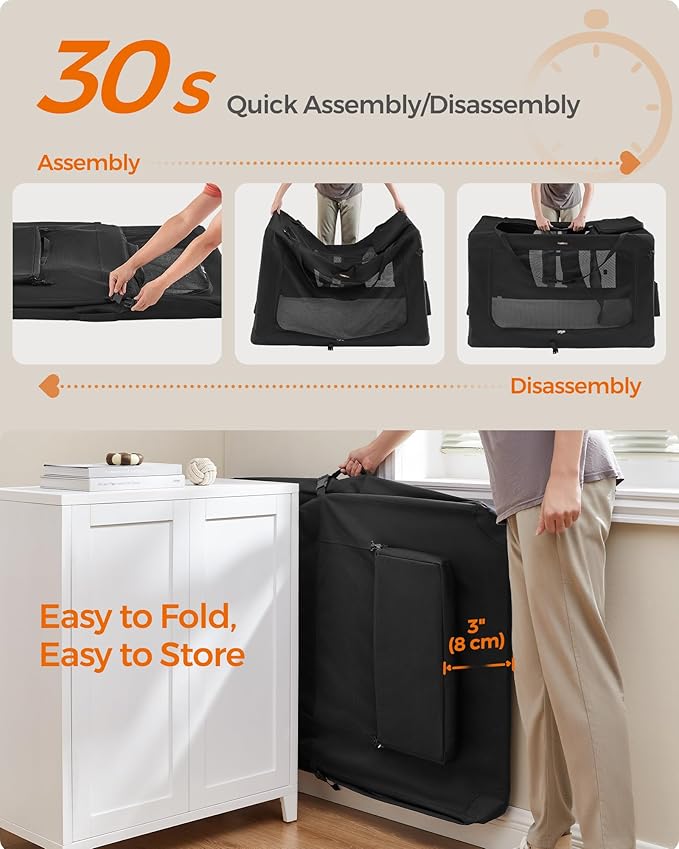 - 【ANTI-ESCAPE & STRONGER】Featuring self-locking zippers that ensure pets can't open it from the inside, the travel dog crate enhances safety while traveling. The thick steel frame and Oxford fabric are scratch- and tear-resistant for prolonged service life