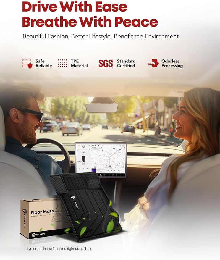 - Odorless floor liners: The floor mat is made of TPE material, which smells odorless and soft touch. Injection molding ensures precision, the anti-skid design on the back can prevent unwanted movement during driving