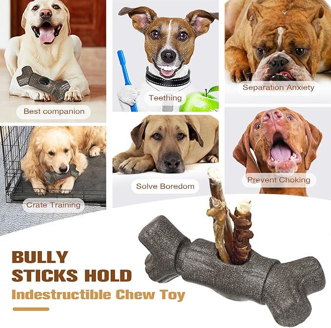 - 【Perfect for Dogs to Grip】The toy has the appearance of a tree branch. The two ends use a wider design so that dogs can comfortably press their paws against the holder, making it easier for our dogs to chew bully sticks or bar snacks