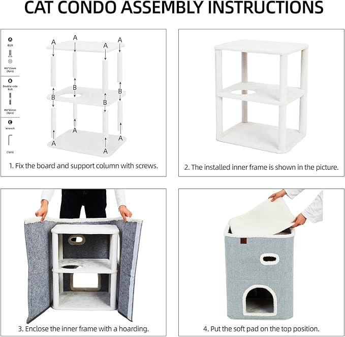 - TRI-LEVEL CAT BED - The Modern design of this Pet cat house offers 3 levels of interactive fun and the perfect place to nap or snuggle. CATBOAT Provide spacious cat houses for indoor cats.