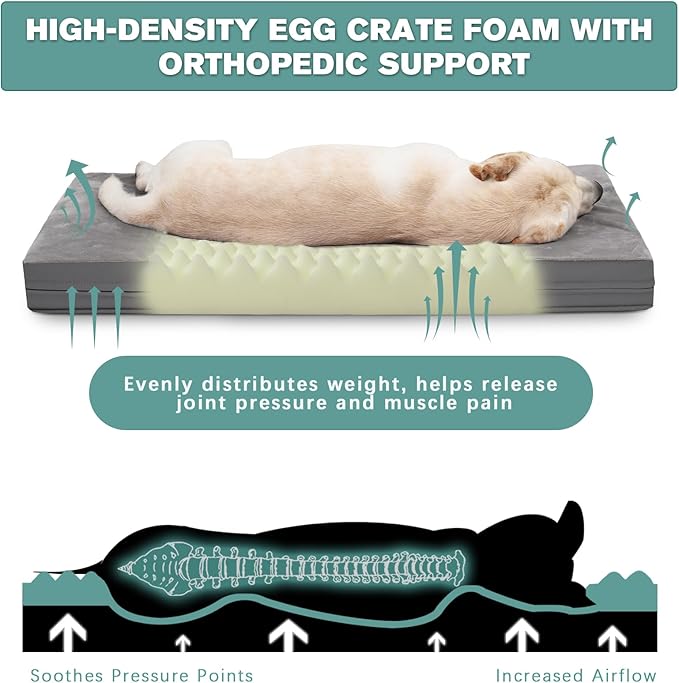 - Orthopedic support: Vonabem orthopedic dog bed is filled with high-density egg crate foam. It provides sufficient support for the spine, helps release joint pressure, alleviates muscle pain and promotes deep sleep, which is a great choice for elderly dogs or pets with discomfort.