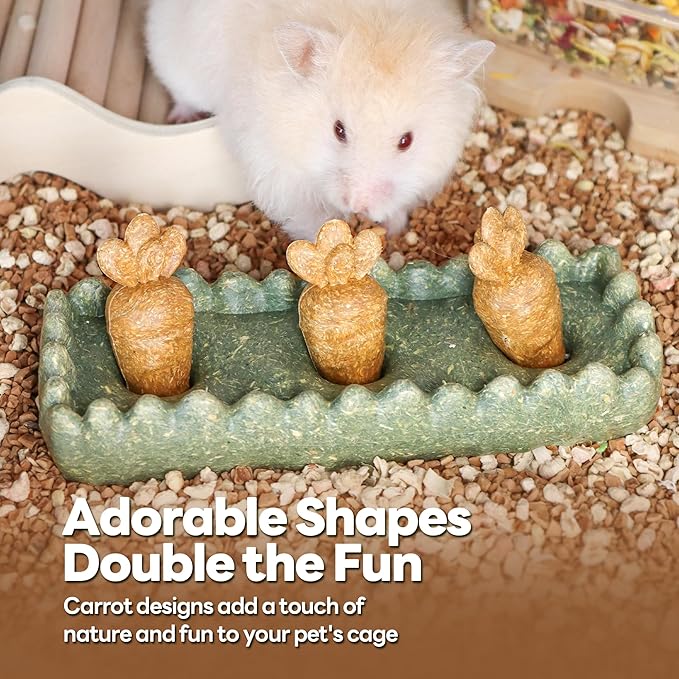 - [ Fun Carrot & Grass Design ] : Adorable carrot and grass shapes add charm to your pet's cage and act as hamster enrichment toys for playful chewing and exploring