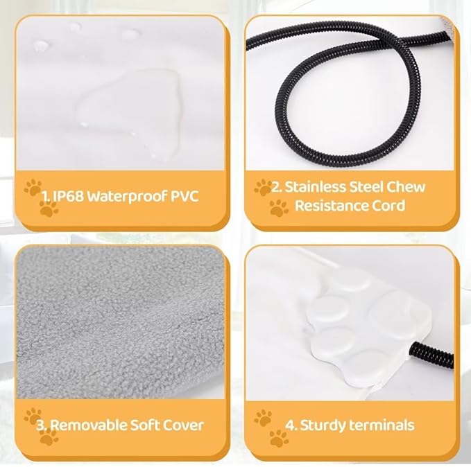 - CONVENIENT & PRACTICAL DESIGN - The unique heating pad design, with a removable polyester cover, allows for easy cleaning and maintenance, while the chew-resistant steel cord ensures durability and longevity.