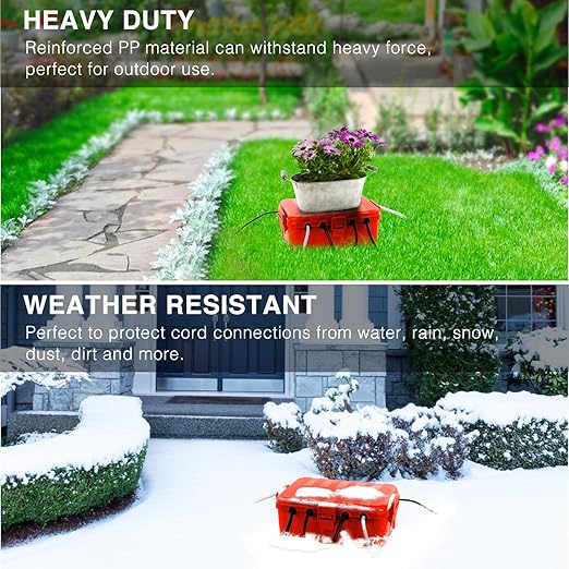 - Made with heavy-duty reinforced PP material to withstand rain, snow, water, dust, dirt and more, continuously protecting outdoor connections from electrical hazard.