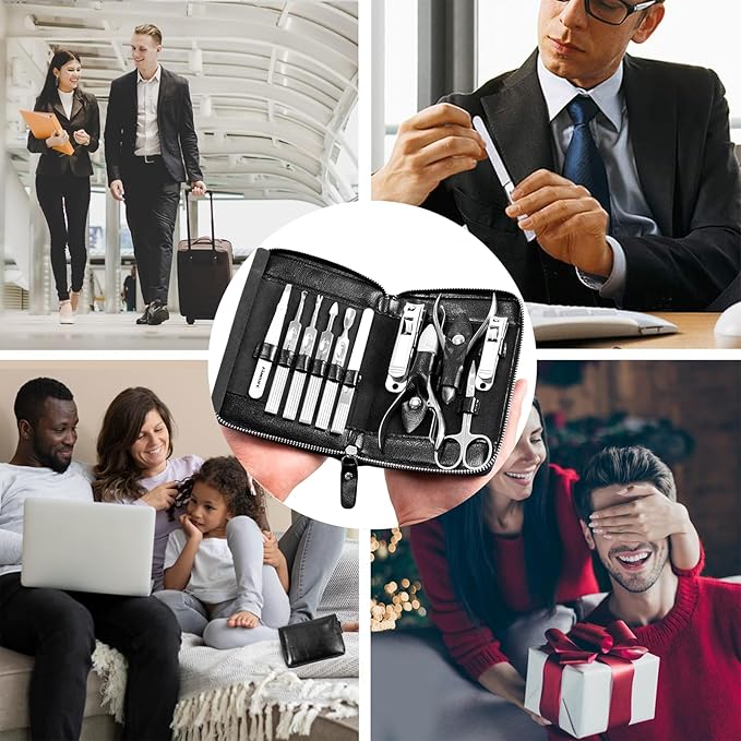 - 【Multi-Functional Manicure Set】 Our manicure kit contains 11 pieces of nail and toenail tools to meet all your hand care, facial, and foot care needs. The nail clipper set suitable for all shape of nails. Manicure set can be a gift for him or her. The best gifts for festivals, such as Christmas, Thanksgiving Day, Fathers' Day and so on