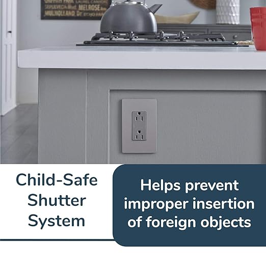 - Included - 1 Legrand - Pass & Seymour Radiant nickel power outlet, 15 amp wall outlet with tamper resistant outlet
