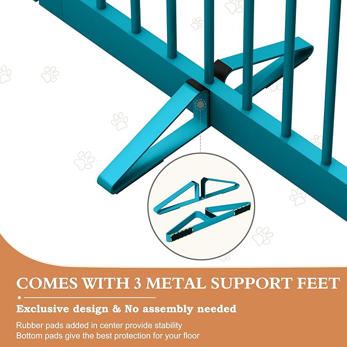 - 【Sturdy and Durable Construction】: Made with high-quality MDF materials, this pet gates for dogs are sturdy and durable. The exclusive metal support feet included with the walk through pet gate provide added stability and security, ensuring that the freestanding dog gates remains in place and does not wobble or tip over. Sturdy hinges that can rotate 360° to accommodate different shapes.