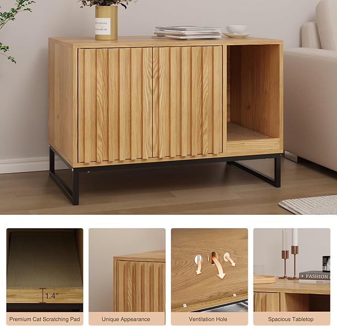 - Versatile Cat Litter Box with Countertop:Our multi-functional cat enclosure litter box is designed with a spacious countertop, perfect for show casing potted plants, magazines, lamps, or your favorite collectibles. It's a versatile addition that can function as a pet house, end table, storage cabinet, or entryway bench, it's also the ideal spot for small pets to rest and play.