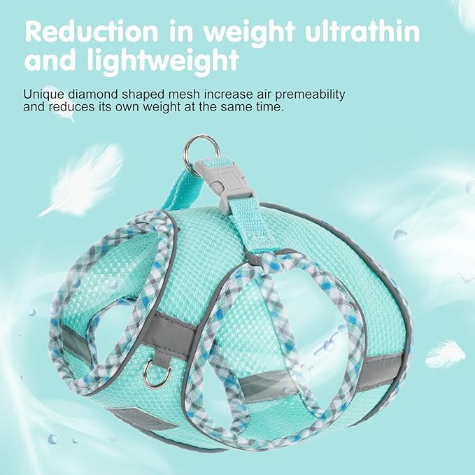 - Light & Breathale; The dog harness is made with jacquard fabric, which is high-density, breathable, three-dimensional, soft and comfortable, and can prevent chewing or tearing. It has extremely high durability, tensile resistance, tear resistance and fusion resistance. It has the characteristics of moisture absorption and perspiration, creating dryness, giving pets an extraordinary wearing experience.