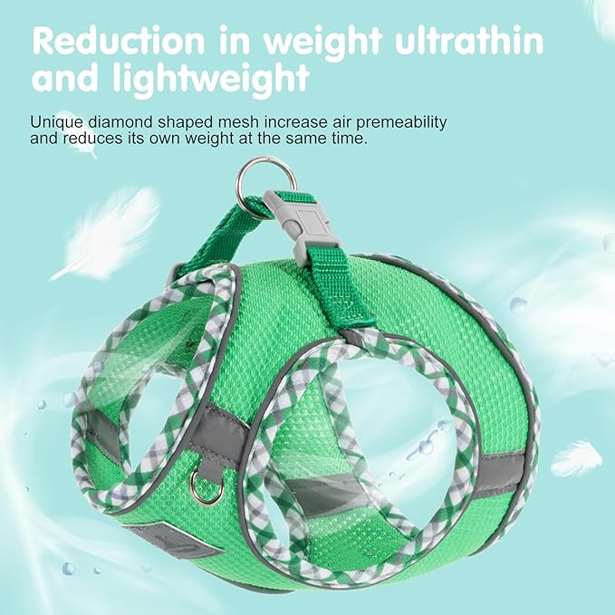 - Light & Breathale; The dog harness is made with jacquard fabric, which is high-density, breathable, three-dimensional, soft and comfortable, and can prevent chewing or tearing. It has extremely high durability, tensile resistance, tear resistance and fusion resistance. It has the characteristics of moisture absorption and perspiration, creating dryness, giving pets an extraordinary wearing experience.