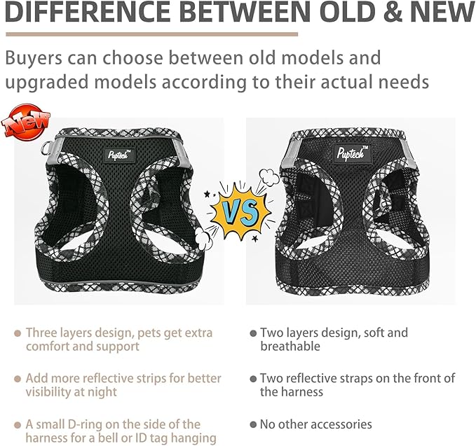 PUPTECK Dog Harness and Leash Set for Small Medium Dogs No Pull Step-in Soft Mesh Puppy Cat Vest Harnesses Reflective at Night, Upgraded New Black XS