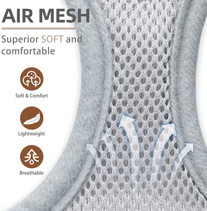 - [COMFORTABLE MATERIAL, DAILY WALKING, FOUR SEASONS WEARING] - The harness is made of durable polyester, and it's adopted with an air-mesh design. The whole harness is very soft, lightweight, and breathable. Even if your dog wears it all day, he won't feel any discomfort. For daily walking or running, it is a very easy thing to do. Besides, this is a four seasons harness, it keeps the dog cool on hot days and keeps the dog warm on cold days.