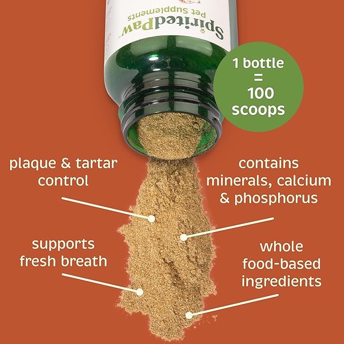 Spirited Paw Dental for Cats & Dogs - Teeth Support Powder for Dogs & Cats - Pet Health Supplements with Calcium & Fresh Breath Support - Dental Care for Plaque & Tartar - 165 g