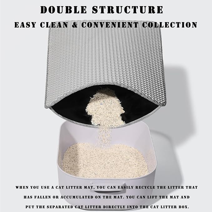 - 😸【Easy to Clean & Convenient to Collect】You can lift the mat and place the litter into the litter box. You can reuse the cat litter collected inside the mat, keeping the environment around the cat litter box clean and save your cleaning time. If it gets dirty, you can wash it with water.