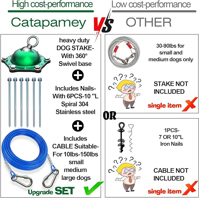 - Will he pull out of the ground? The Catapamey The Heavy Duty Dog Stack is equipped with 6 heavy-duty 304 stainless steel screw anchors up to 10 inches in length and an industrial grade aluminum base. The design takes into account the maximum explosive power of a 150LBS large dog when it sees rabbits and birds. dog chains for outside allow you to enjoy a happy life without worry.