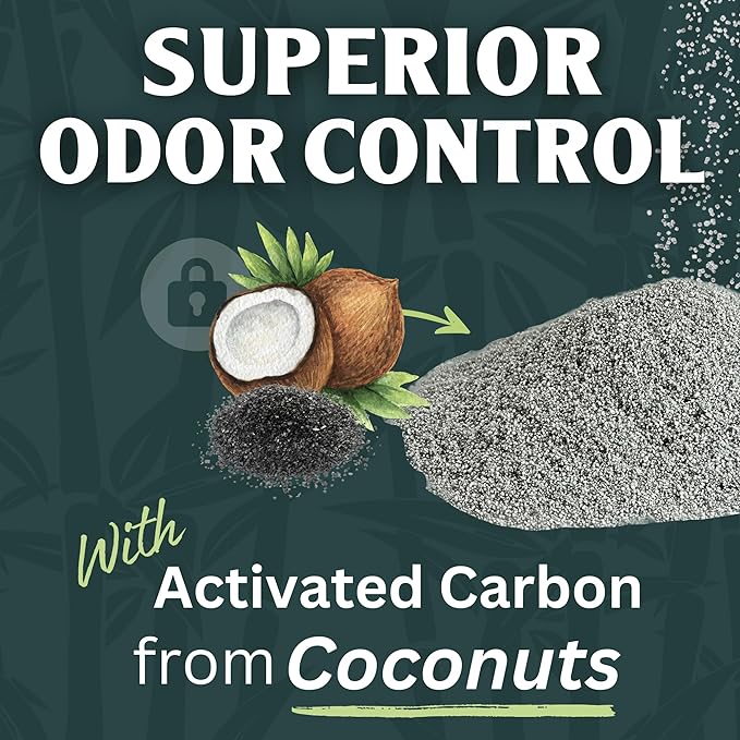 - Superior Cat Litter Odor Control: With our odor control cat litter box which have ultra-absorbent, moisture-wicking capabilities,it extends the lifespan of your cat litter, saving you time and money by lessening the need for frequent changes, all while maintaining an odor-free home. Superior odor control with activated carbon from coconuts.