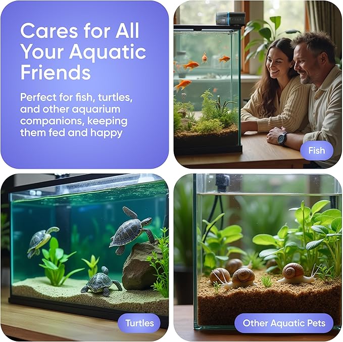 - Perfect for Small & Large Aquariums – Designed for versatility, this automatic fish feeder for aquariums suits various tanks, and fish food types, including flakes and pellets. Great as a vacation fish feeder for busy pet owners.
