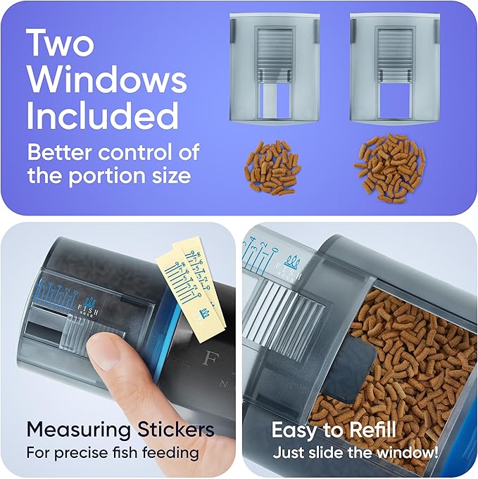 - User-Friendly Operation – Designed with simplicity in mind, this automatic fish feeder requires no complex programming. Its easy-to-refill design, complete with a "window" and spare, makes it a hassle-free choice. No display screen though.