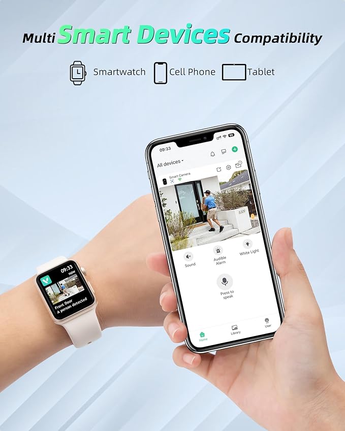 - 【Scare Intruders Live – 2-Way Talk & Siren】Catch threats in real time! The outdoor camera wireless sends instant app alerts via app VicoHome and lets you shout through 3D noise-canceling mics. Trigger a piercing siren or warning lights to stop trespassers cold.