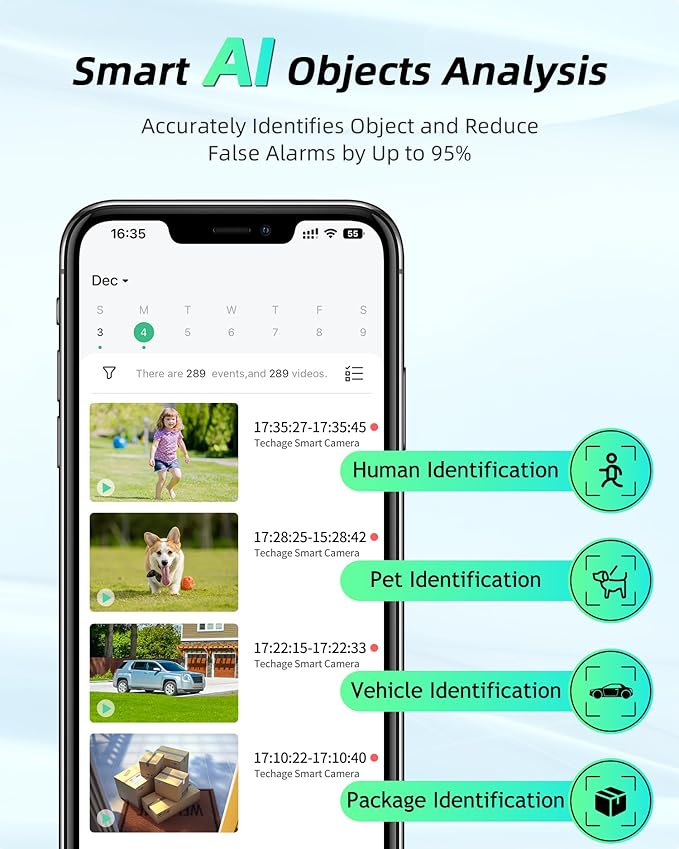 - 【Smarter Alerts, 95% Fewer False】AI-powered cameras for home security instantly distinguish people, pets, cars, and packages. Advanced PIR sensors + 95% accuracy mean no more pointless alerts about raccoons or swaying trees. Guard what matters, skip the noise.