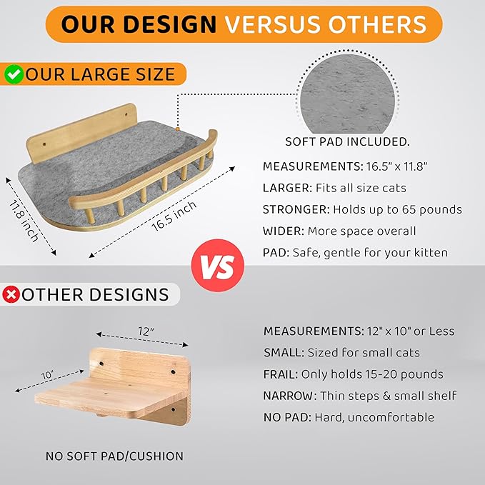 - Easy and Secure Installation - Mount your cat wall shelves quickly with included screws, anchors, and screwdriver. Installation takes about 10 minutes per step, ensuring a safe and stable setup for cats up to 30 lbs. (No no-drill options available).