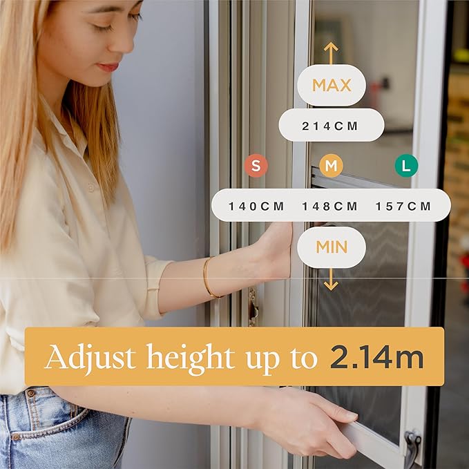 - PRODUCT DIMENSIONS: Frame: 9.84” W x Up to 84.25” H | Flap: 8.86” W x 12.20” H | Fits most sliding doors