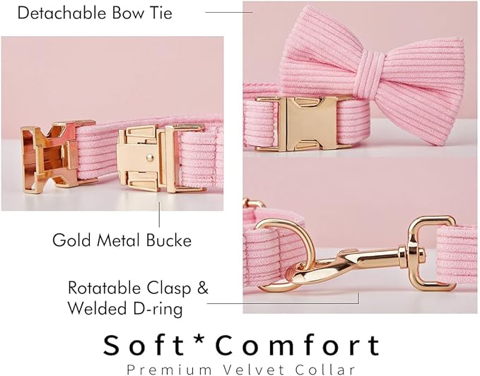 Custom Dog Collar with Metal Buckle - Pet Collars Personalized with Name and Phone Number (Corduroy)