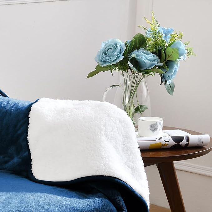 Waterproof Blanket for Bed Couch Sofa, Soft Liquid Pee Proof Pet Blanket for Dog Puppy Cat, Reversible Sherpa Fleece Furniture Protector (Navy Blue, 30x40 inches)