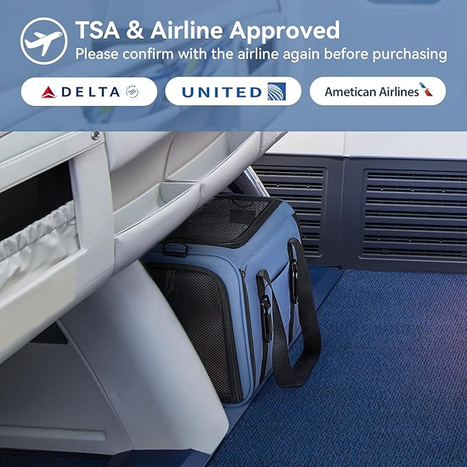 - Airline Approved: To fit under airline seats, airlines only allow small dogs and cats. We recommend airline-approved carriers for pets measuring 18”L x 11”W x 11”H and weighing under 12 lbs. Before purchasing, please check the size. Do not choose your carrier only based on weight. Reference your pets' length and height in selecting size