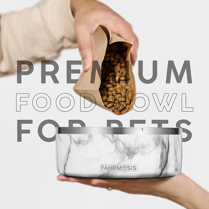32 Oz Dog Bowl with Slow Feeder Insert Stainless Steel Pet Water Bowl for Medium & Large Breed Non Slip Rubber Base & Plastic Puzzle Feeder - White Marble