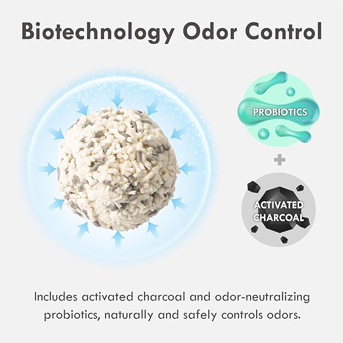 - ACTIVATED CHARCOAL ODOR CONTROL: Experience long-lasting freshness with our activated charcoal and exclusive probiotic formula cat litter, which effectively neutralizes odors for a pleasant environment both for you and your feline friend.